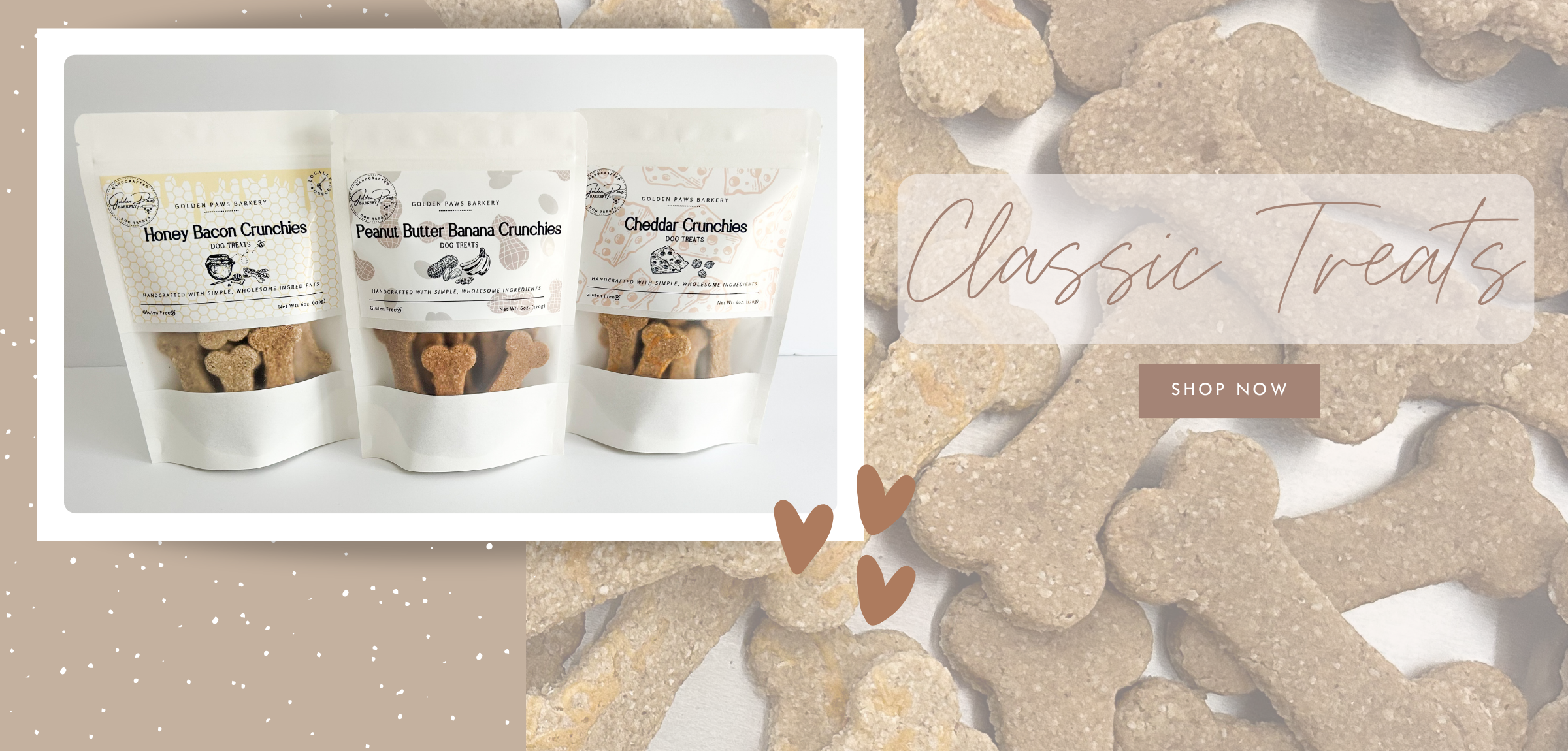 - AmandaOur pups LOVE the treats from Golden Paws Barkery! I was looking for a cleaner, simple ingredient option for their treats and WOW are these amazing! We’ve tried every flavor and our girls love them all. We loved them so much I purchased the special Easter edition treats to give out to family and friends for their pups. (Bonus, love supporting small & local business ) Highly recommend!