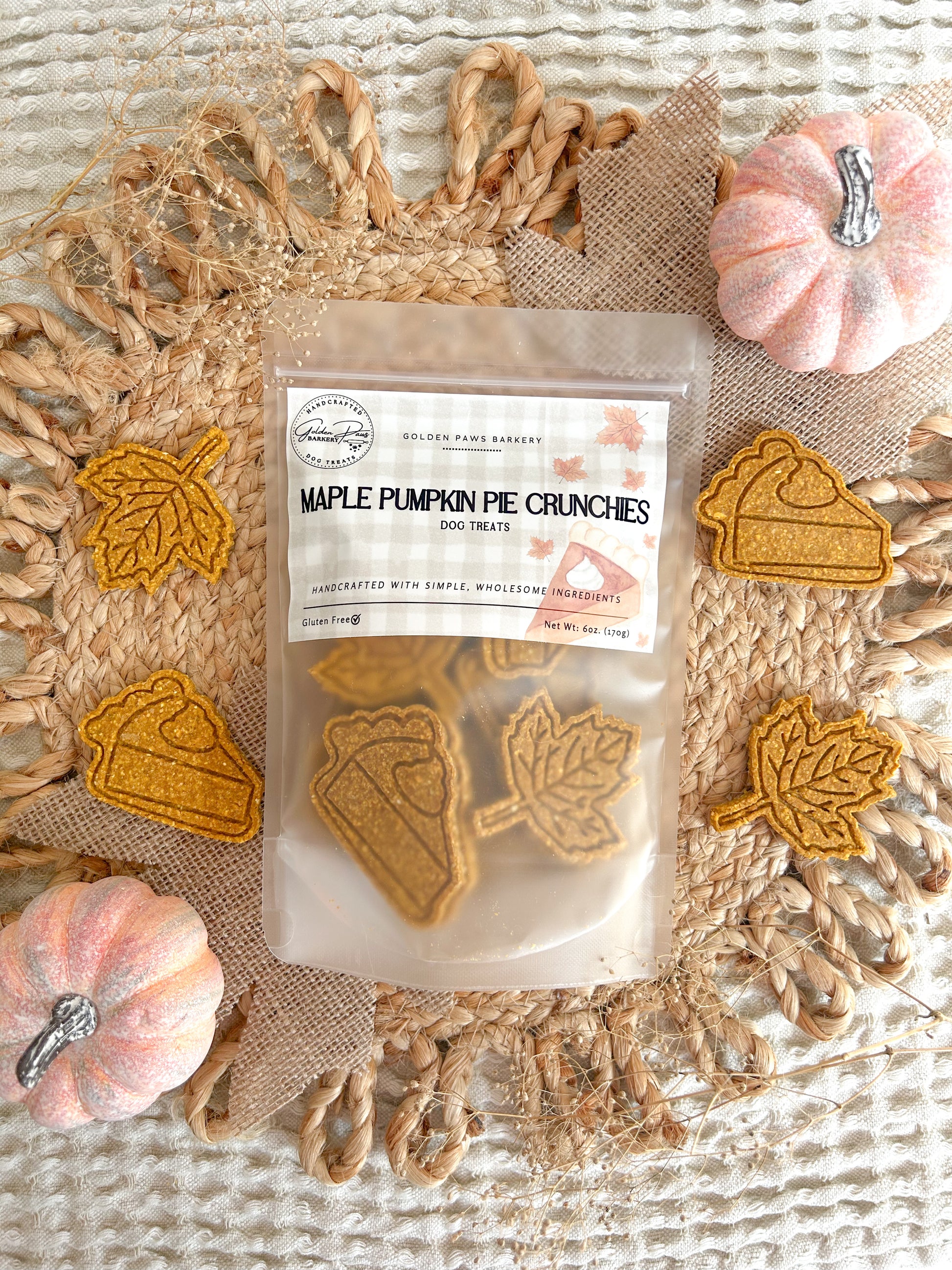 Embrace the flavors of fall with our Maple Pumpkin Pie stamped treats, perfect for your cozy-loving pup! Made with our delicious blend of pure pumpkin, Ceylon cinnamon, and locally sourced Premium Maple Syrup from Sussex County, NJ, these treats are a sweet and wholesome Fall snack ◡̈ ♡